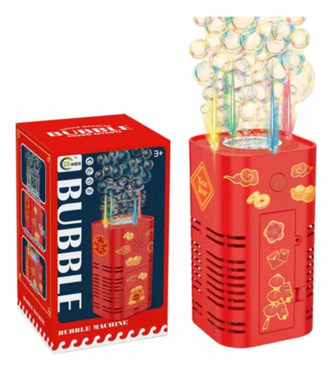 Máquina sopladora de burbujas de fuegos artificiales de imitación de Año Nuevo Chino, burbujas eléctricas con luz musical, regalo de fiesta de boda, 2025